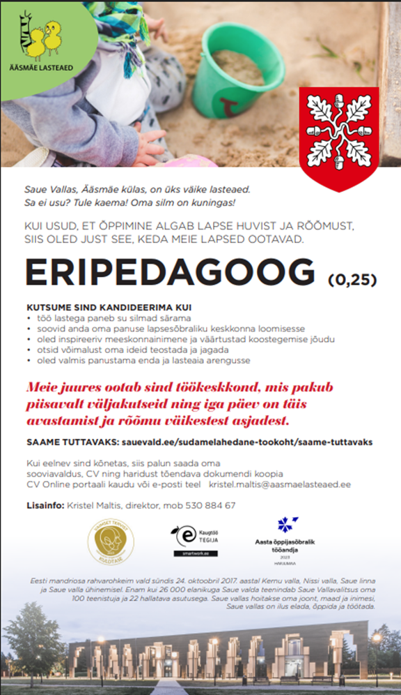Saime taaskord tiitli „Hea lasteaia teerajaja 2024" , eelmine tiitel 2021