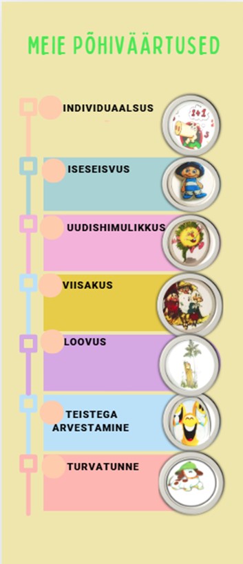 „Hea lasteaia teerajaja" tiitli ja logo saaja eneseanalüüsis kirjeldatud praktikad on seostatud ja analüüsitud lähtuvalt lasteaia põhiväärtustest. Analüüsi koostamisse on kaasatud eri osapooled